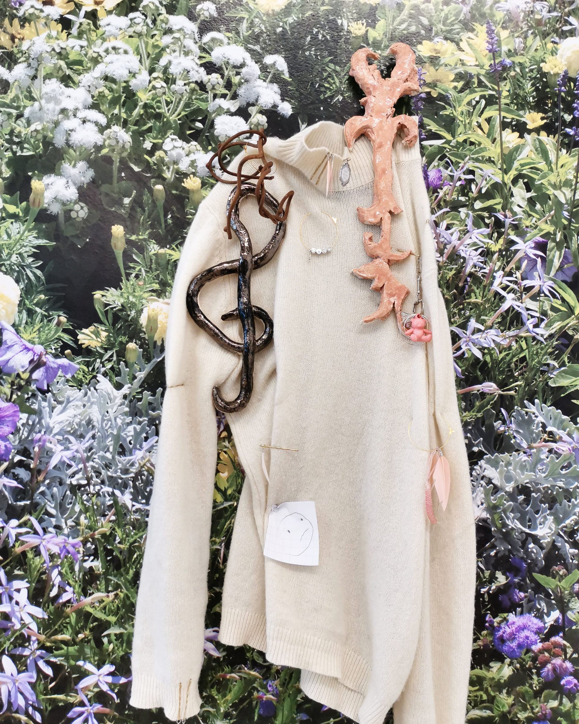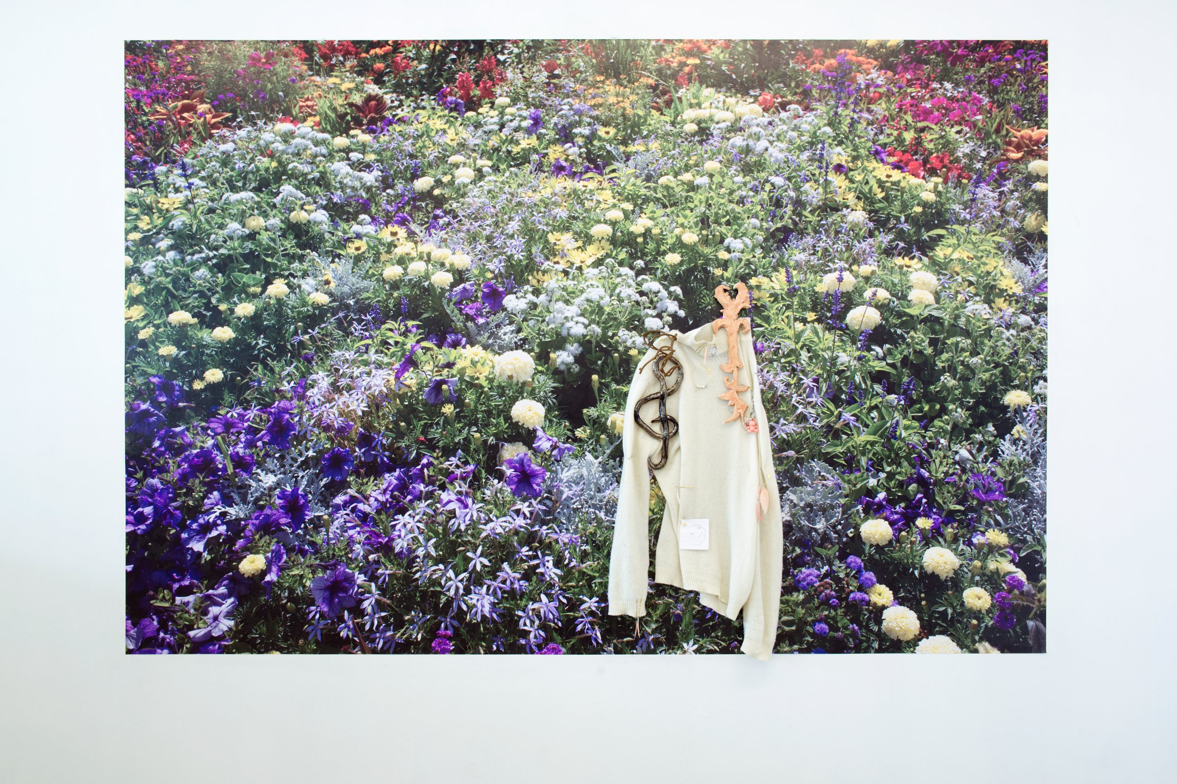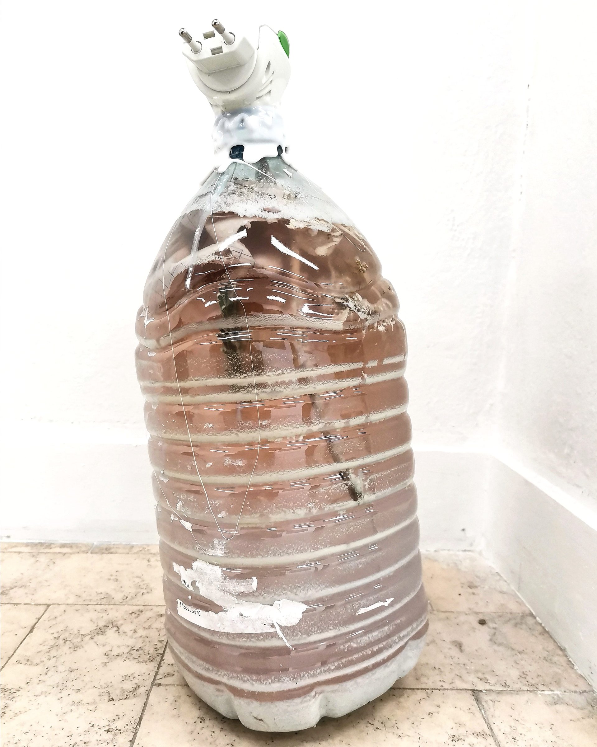 Installation : dessins, céramique, 65 kg d’agar-agar, photographies, plastique, chaises, jeans, post-it, posters, poème, glutane, dimensions variables