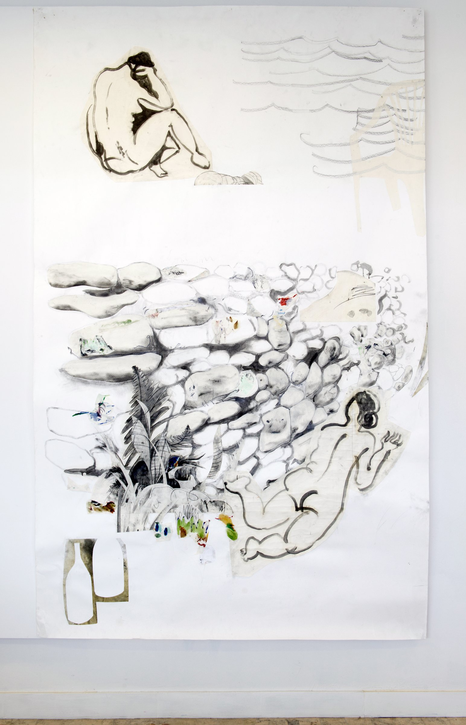 Graphite, aquarelle et collage sur papier, 240 cm x 150 cm