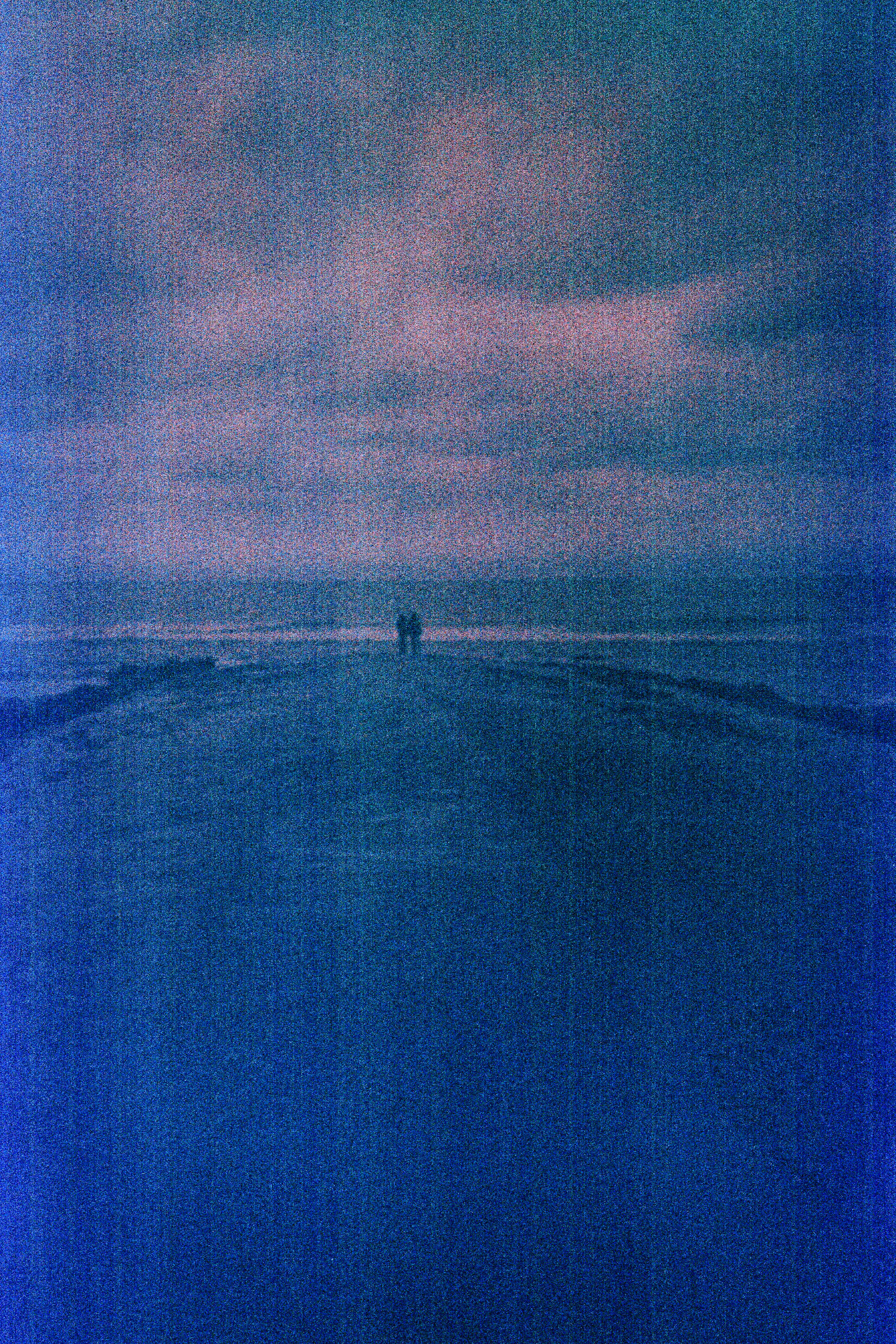 Ce travail tente de retranscrire mes longues marches le long du littoral. Comme si l’on voyait les paysages les yeux fermés, ou « jusqu’à son propre aveuglement » {note}1. Le titre, extrait de L’Homme atlantique de Marguerite Duras, évoque l’eau qui imprime son rythme au pas et au regard, l’apparition et la disparition de la ligne d’horizon et de la mer lors de mes marches, souvent contraintes par les fortes marées m’obligeant à gagner les hauteurs. La mer se retire, revient, efface et révèle. L’expérience du littoral devient immersion et participation à une matière vivante et changeante. Les photographies oscillent entre le proche et le lointain, le fragment et l’infini, cherchant dans la mouvance de l’eau le passage entre réalité et imaginaire.