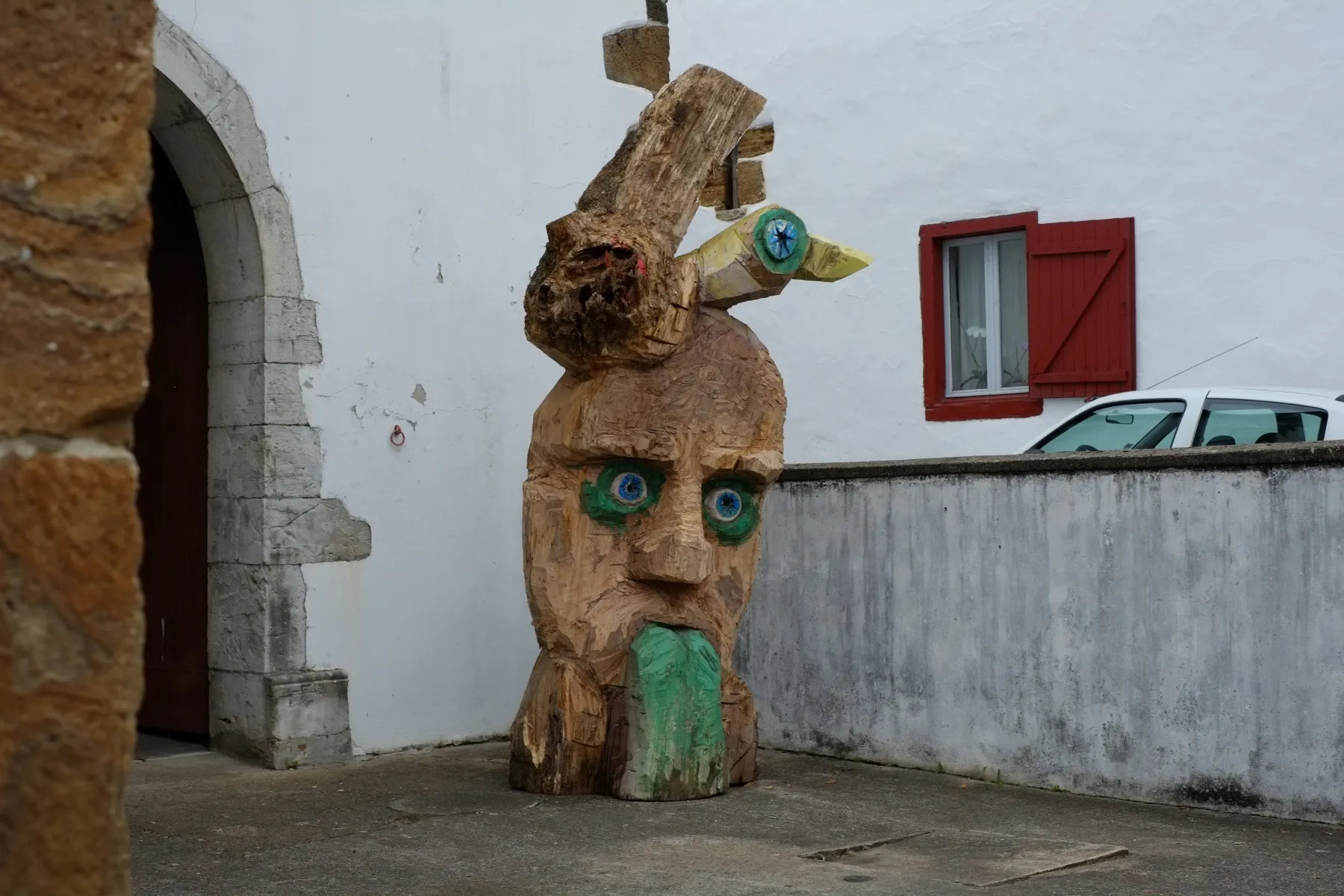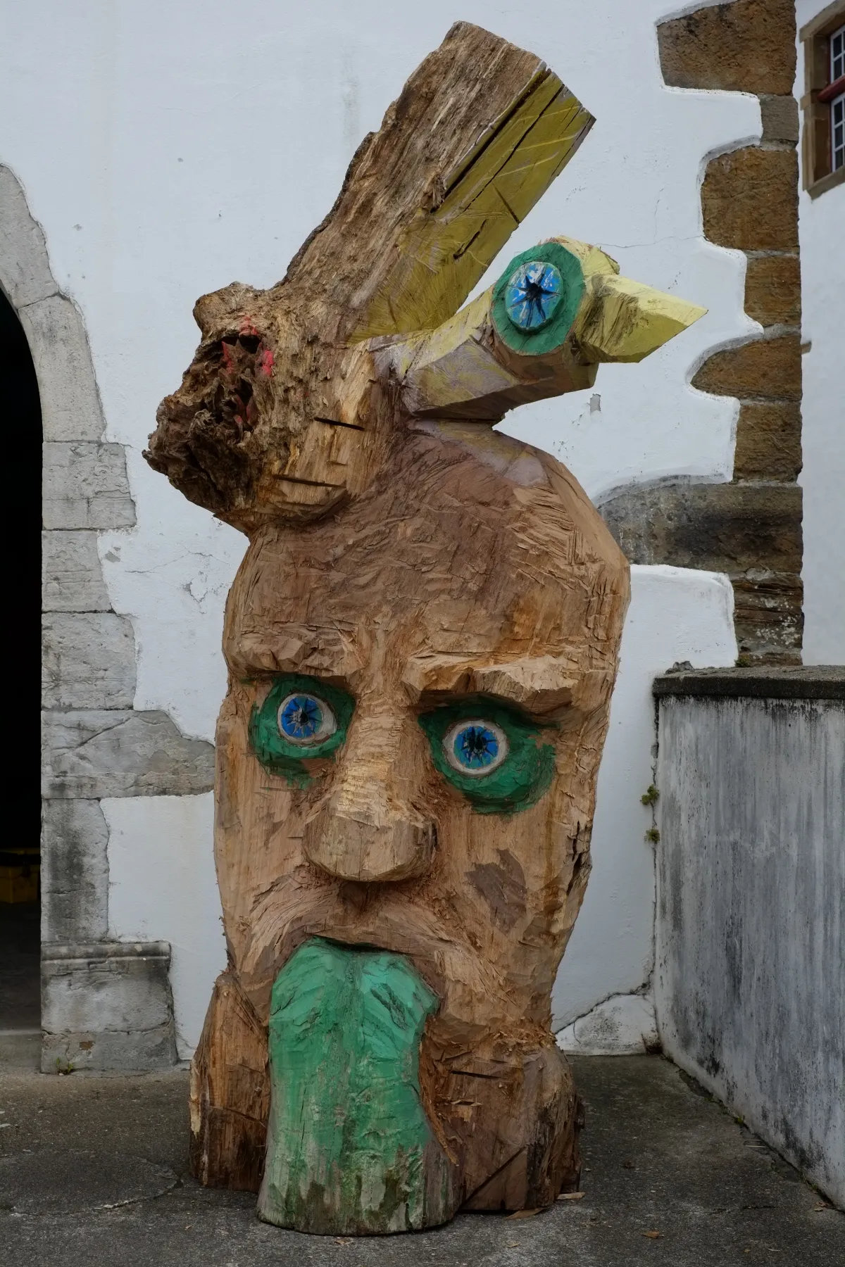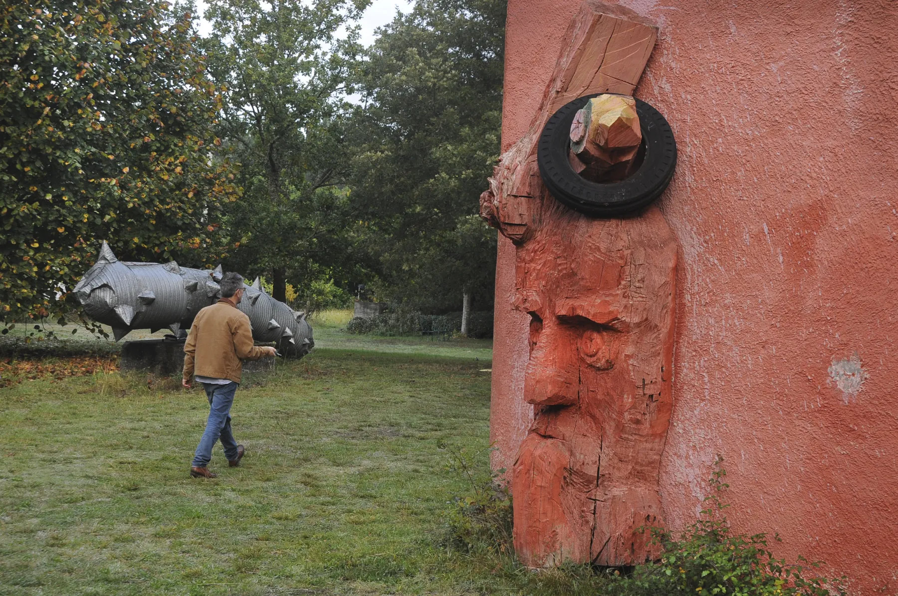 Tête, 2013Version 2Chêne, pneu, peinture, 300 x 140 x 70 cmCollection privéeCrédits photographiques : Jean-Bernard Laffitte