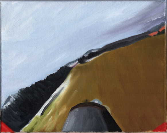 « Mattéo fait souvent voler son avion télécommandé au-dessus de la campagne vaudoise. Il a fixé une petite caméra sur le nez de l’avion pour filmer ses vols. Des captures d’écran m’ont permis de récupérer quelques images pour réaliser cette série. Ce point de vue sur la campagne est une expérience totalement différée, que je ne pourrai jamais vivre, comme celle rêvée d’être un oiseau. »
