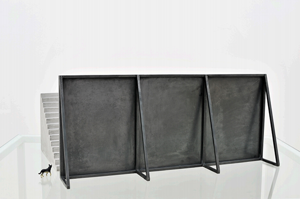Plâtre, verre sécurit, pigments, acier, miroir, accessoires, 120 x 90 x 110 cm