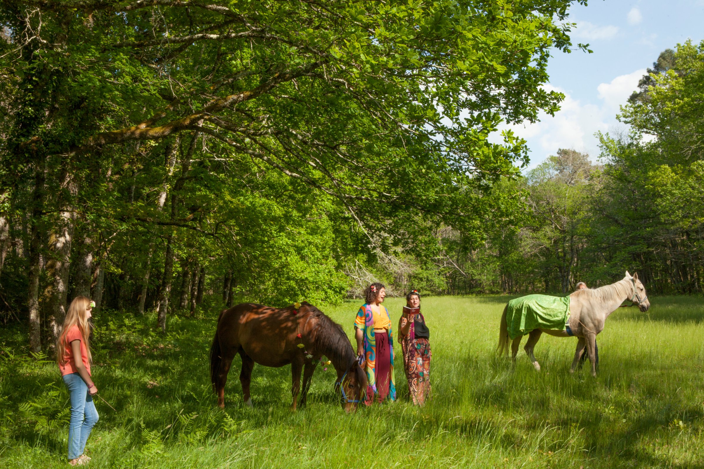 Avec Némo (cheval), Helen Green (éleveuse) et Alice Ifergan-Rey (conteuse)