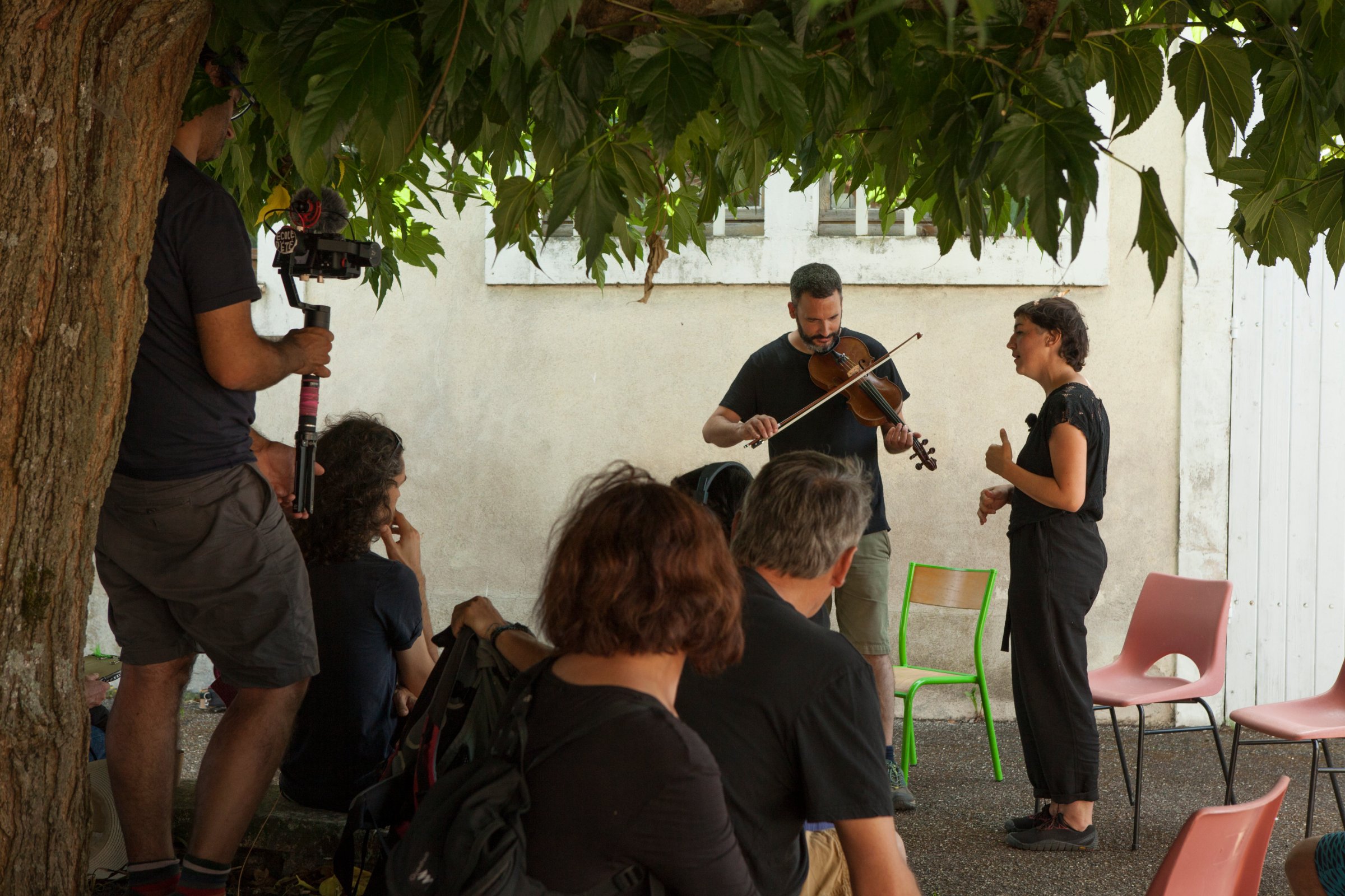Avec Frédéric Fijac (poète et occitaniste), Pauline Weidmann (performeuse) et François Dumeaux (musicien)
