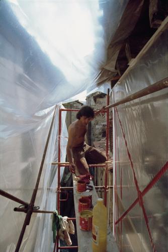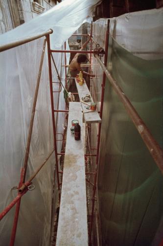 Photographies de Jean Sabrier peignant la bâche