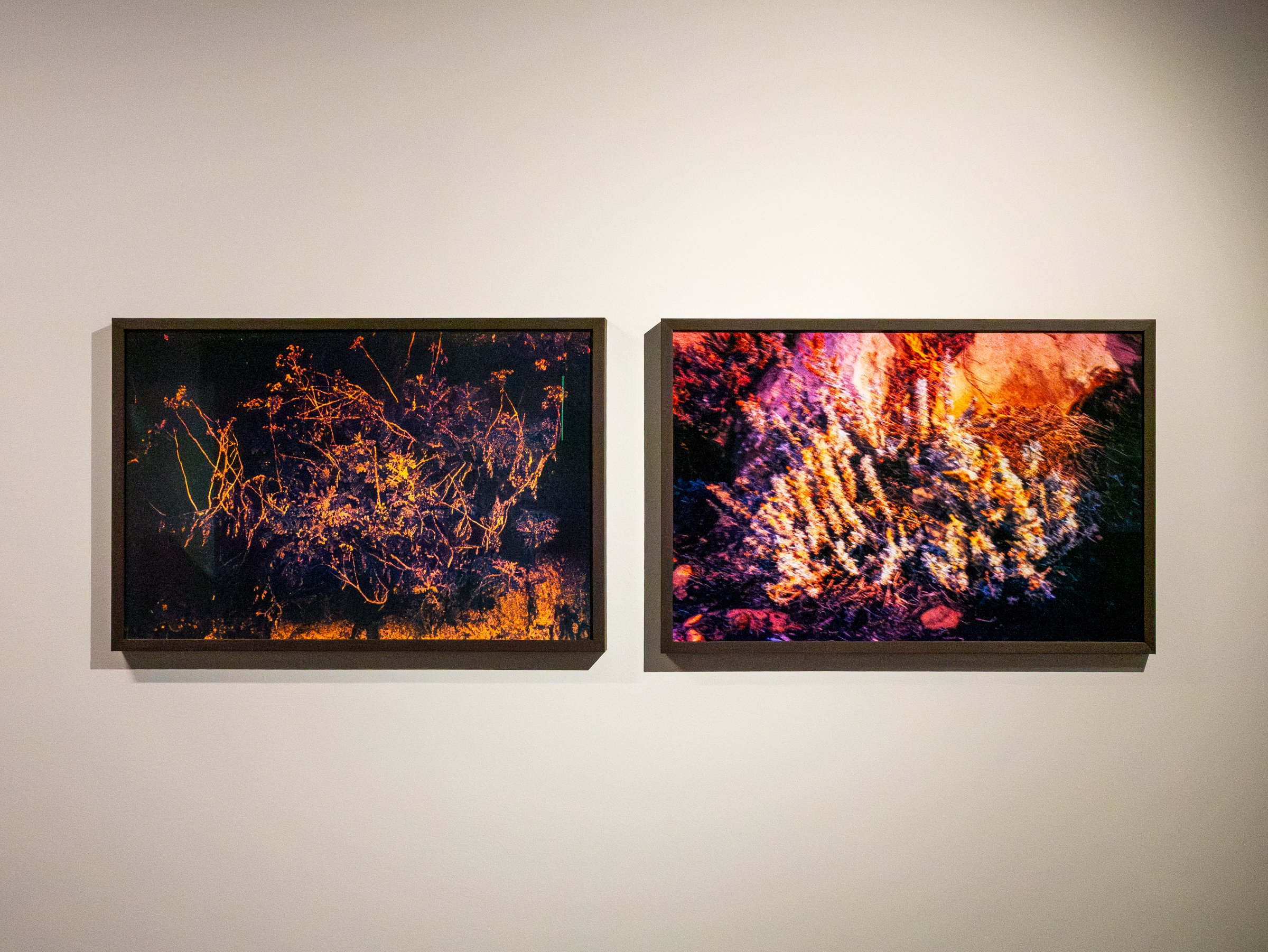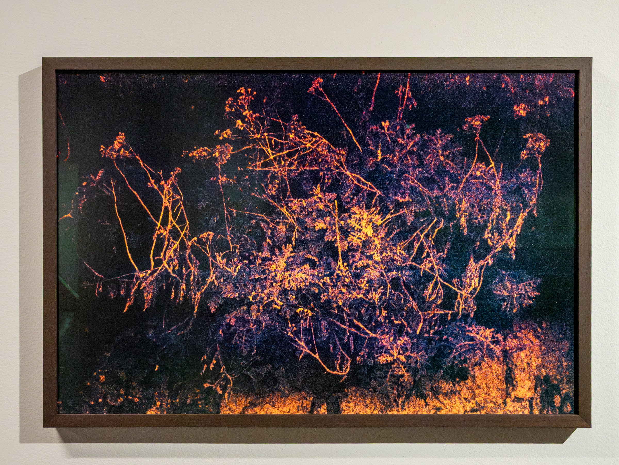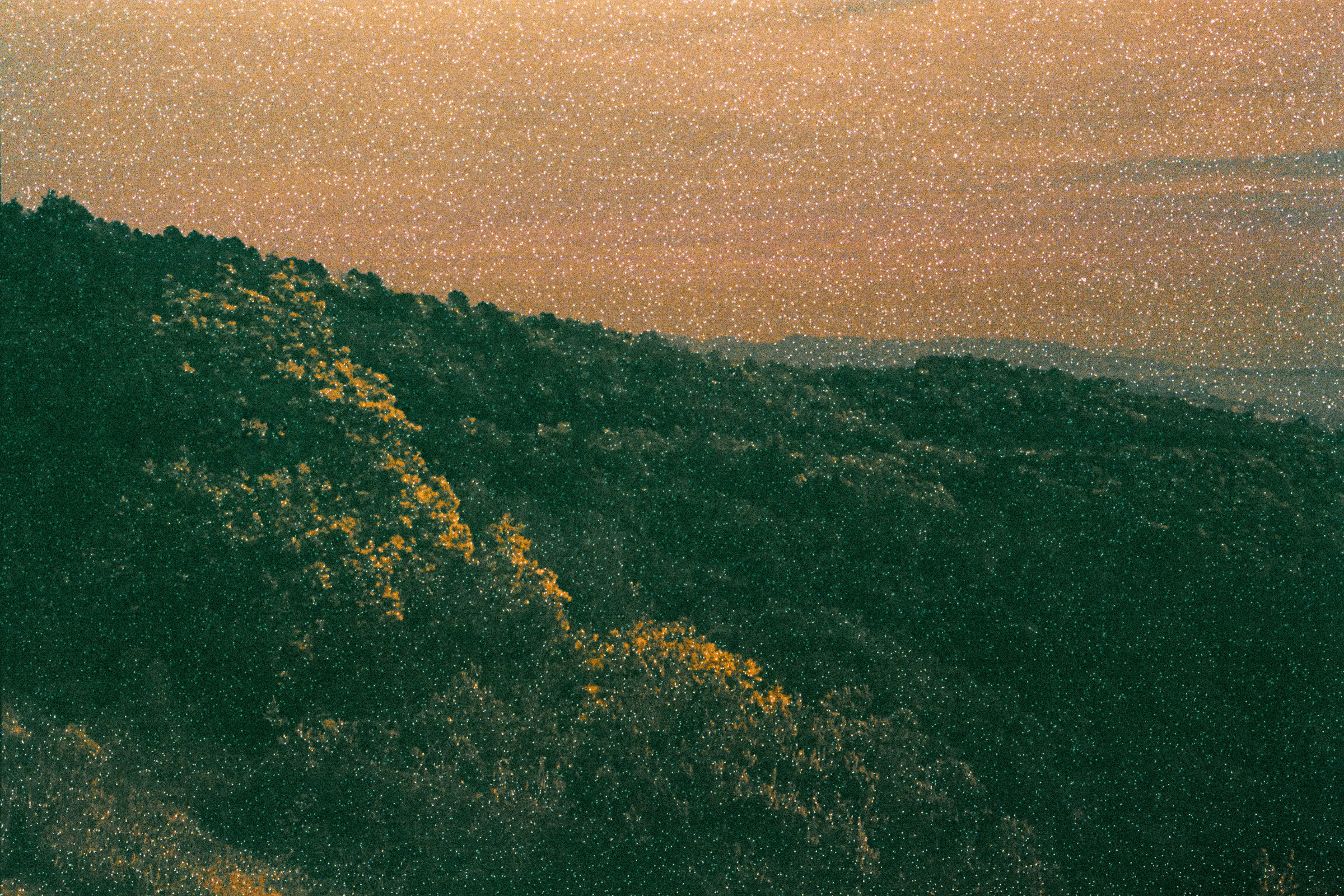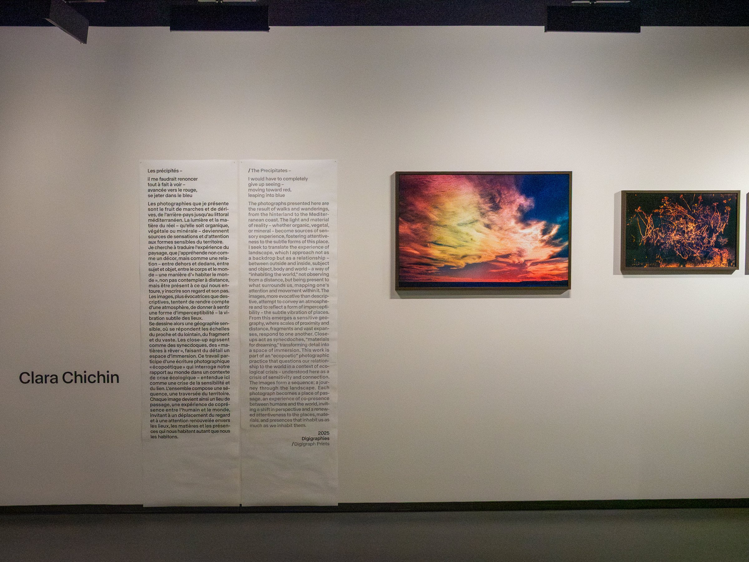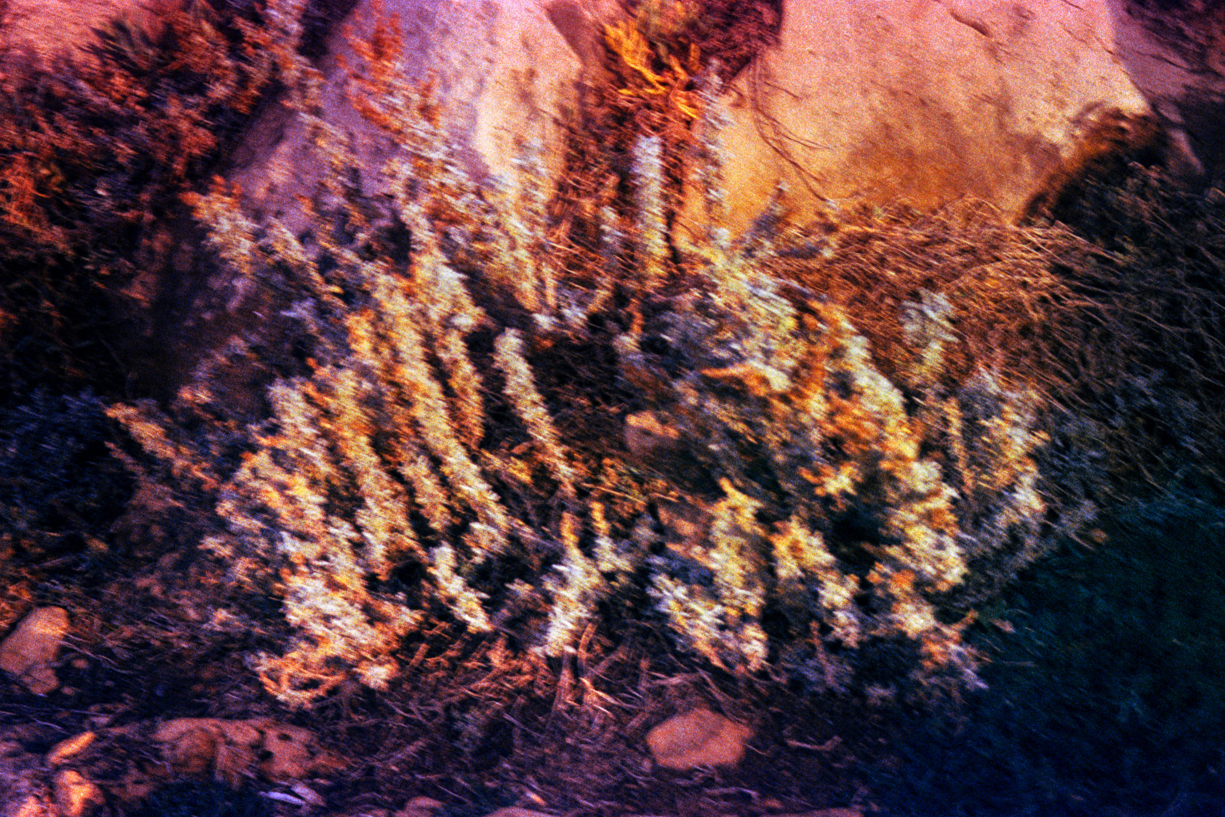 Ce travail a été réalisé grâce au Centre de la photographie de Mougins, sur invitation de Yasmine Chemali et François Cheval. J’y ai poursuivi mes recherches autour de la couleur, de la lumière et de l’expérience du paysage comme traversée sensible. Les images naissent de déambulations attentives aux variations chromatiques et aux zones de bascule entre saturation et effacement. Le paysage y est moins un motif qu’une matière en transformation continue, affectant le regard et le corps. Cette série prolonge mon intérêt pour une photographie de l’impression, où la couleur devient expérience. La déambulation s’est faite de l’arrière-pays vers le littoral méditerranéen. La matière du réel devient source de sensations, d’impressions et d’attention aux formes sensibles du territoire. Je cherche à traduire le paysage comme relation – entre dehors et dedans, entre le corps et le monde – une manière d’« habiter le monde », y inscrire son regard et son pas. Les images, évocatrices, rendent compte d’une atmosphère et de l’imperceptible – la vibration subtile des lieux. Close-up et détails deviennent des « matières à rêver », invitant à une immersion sensible et poétique.
