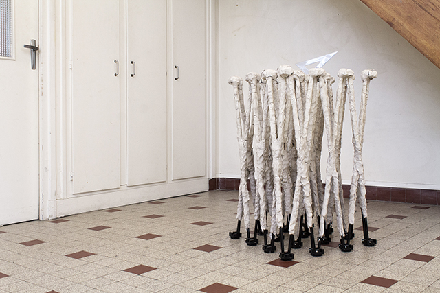 Acier, plastique, argile auto-durcissante, équerre, 114 x 51 x 51 cm