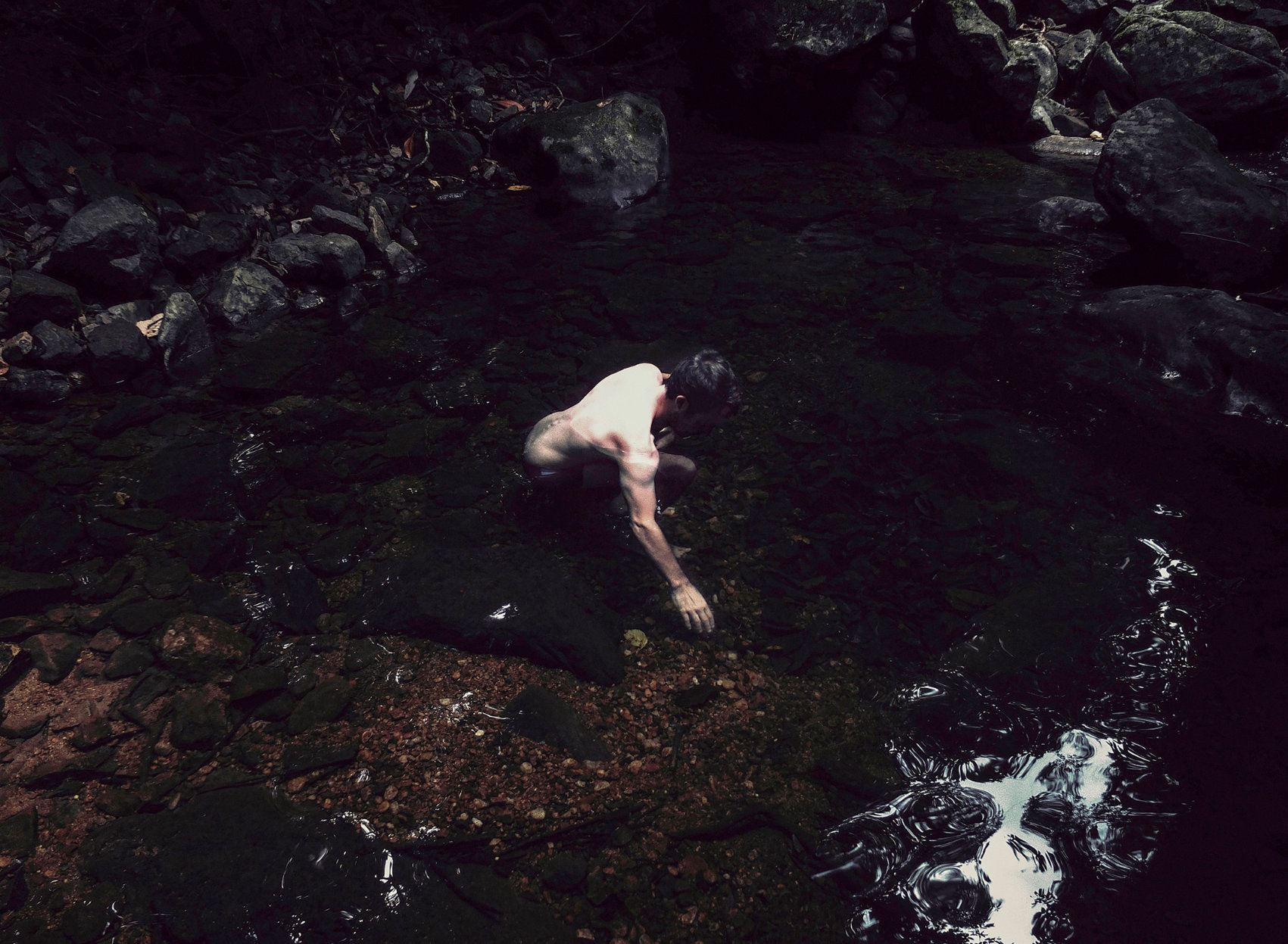 Dans ma série Hypernuit – Il y avait deux soleils, le reflet de la lumière, le scintillement, le soleil, mais aussi la nuit, le crépuscule, l’absence de clarté sont un leitmotiv. Les images tombent dans la pénombre. Le monde est vu comme mystérieux. L’association de la nuit au soleil fait écho à l’oxymore “soleil noir” et à la mélancolie. Avec le terme “hypernuit”, je suggère quelque chose de l’ordre du “plus que la nuit”, de la nuit redoublée. J’avais aussi en tête l’idée que le trop de lumière aboutit à l’éblouissement, à l’aveuglement. Ainsi l’excédent, le débordement de lumière peut devenir la nuit par excès. J’avais envie de jouer sur cette ambiguïté.