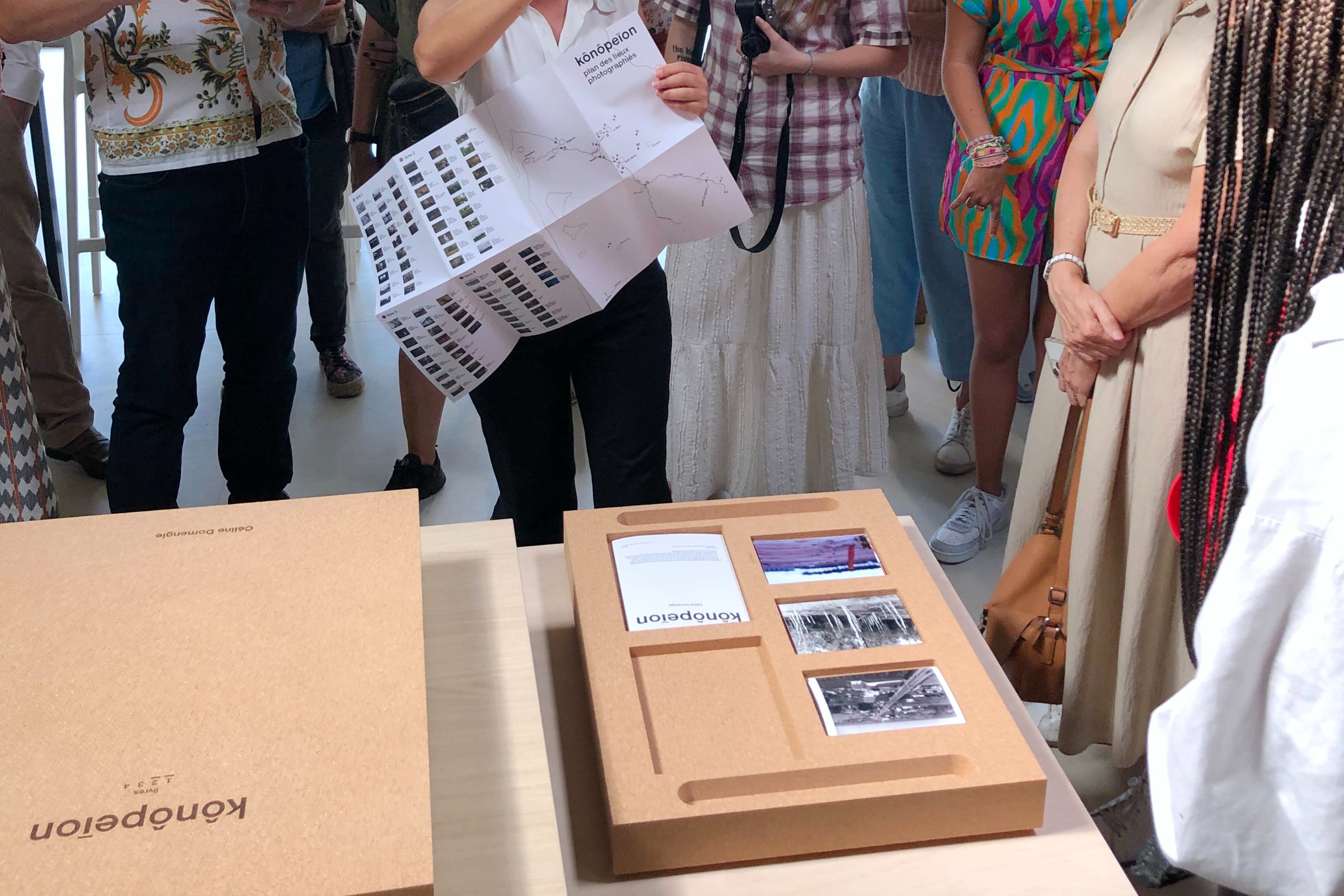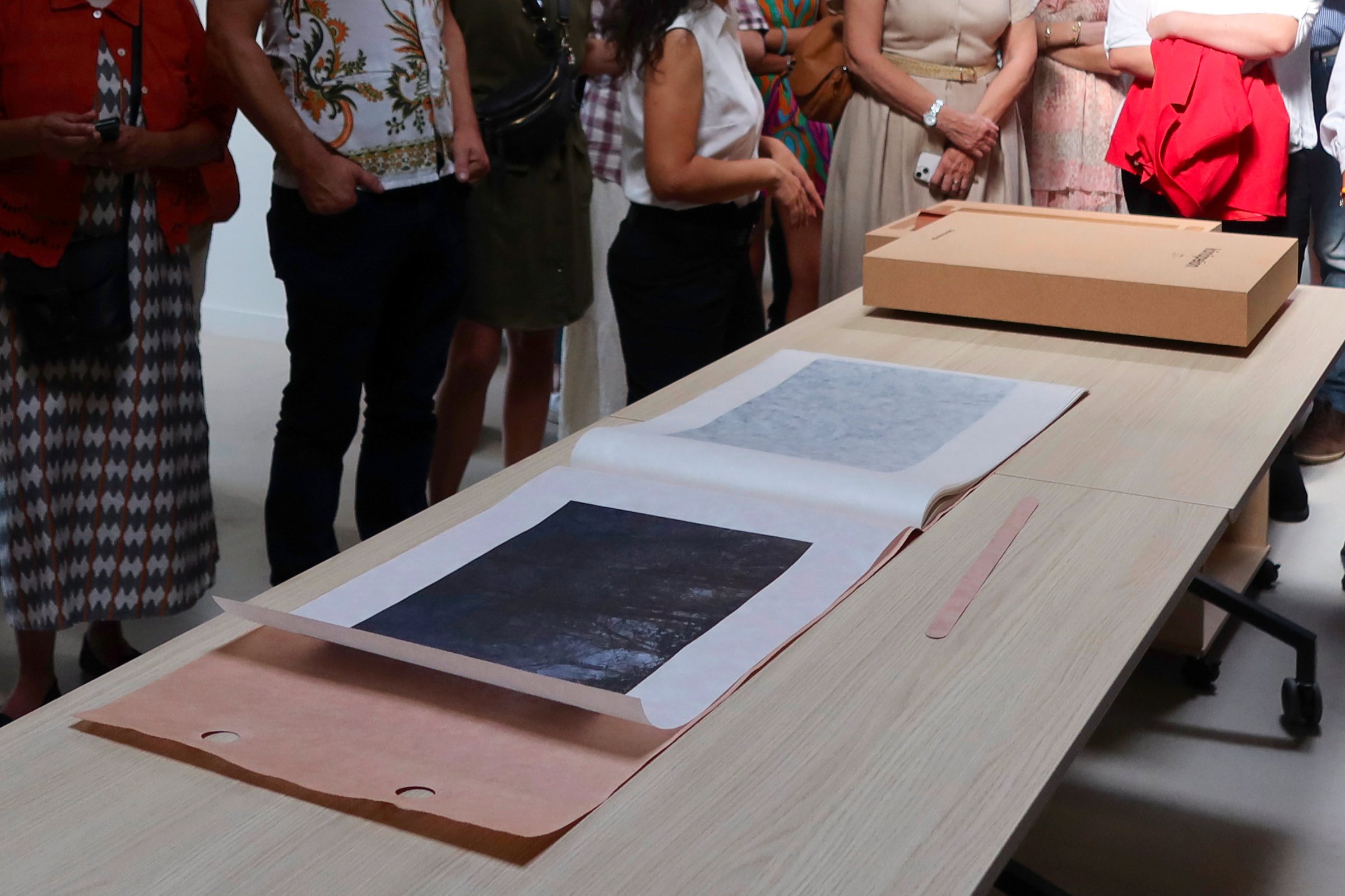 2 boîtes en liège, dimensions ?, contenant : 4 livres photographiques, impression sur papier japonais, dimensions ? chacun (ouverts) 1 livret de présentation, 1 plan des lieux photographiés, 3 séries de photographies imprimées en format 10 x 15 cm Œuvre réalisée grâce aux contributions de Agglolux-CBL, Laure Gilquin, Le Bolabo, Méta et Cocktail Produite dans le cadre du 1% artistique Les Cycles du vivant au collège et lycée du Barp porté par Pointdefuite et Zébra3 Vue de l’inauguration du 1% artistique, septembre 2025
