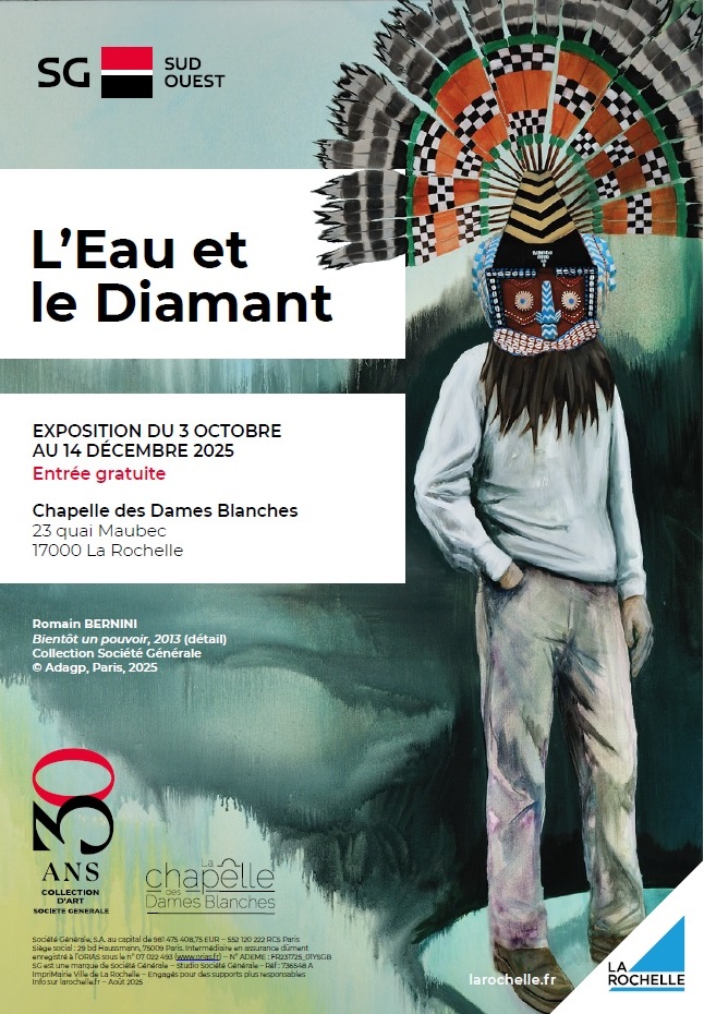Du 3 octobre au 14 décembre 2025, SG Sud Ouest s’associe à la ville de La Rochelle pour présenter, à la Chapelle des Dames Blanches, une sélection d’œuvres choisies de la Collection d’art contemporain Société Générale. Dans le prolongement de l’exposition L’Eau et le Diamant, réalisée par la commissaire Lauranne Germond, ces œuvres questionnent les relations entre l’Homme et la Nature.