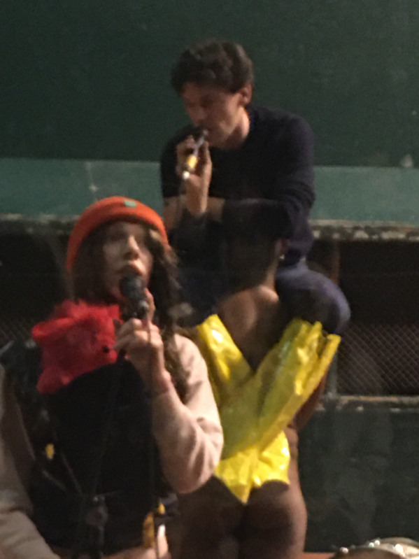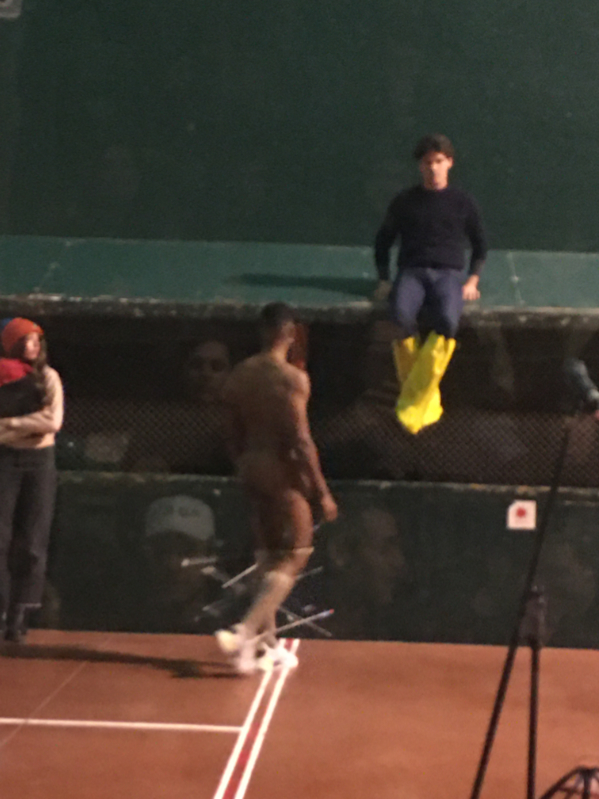 Chaque performeur·se qui entre sur le court pose et allume une lampe qui lui a été assignée et l’allume. Plus il y a de performeur·ses, mieux l’action est visible.