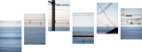 J’en ai conçu un accrochage littéralement en équilibre sur la ligne d’horizon. Cette ligne à portée de regard s’étire et crée du lien entre des séquences faites d’attente, d’incertitude, d’anxiété d’autant que les photos prises pendant la période Covid ont été capturées lors des courtes promenades autorisées à moins d’un kilomètre du lieu de confinement. Offrant une vue sur l’océan sans possibilité de s’en approcher, symbolisant une privation de liberté et un aléa environnemental nous privant de l’accès aux ressources naturelles, elle rejoint l’idée de sidération qui jalonne mon travail.