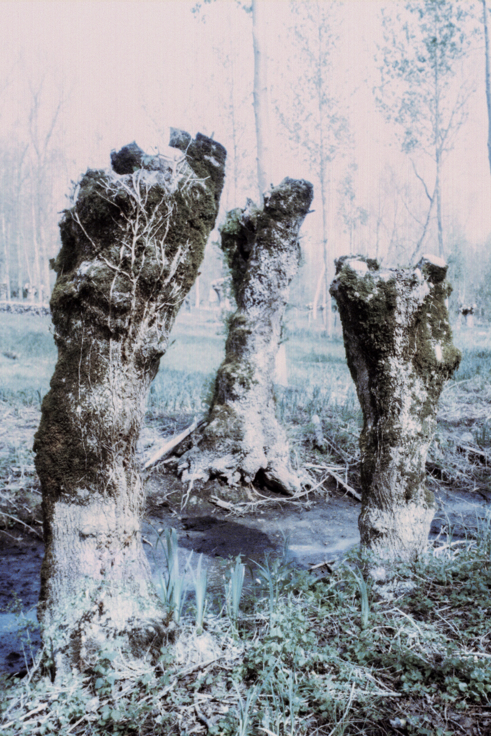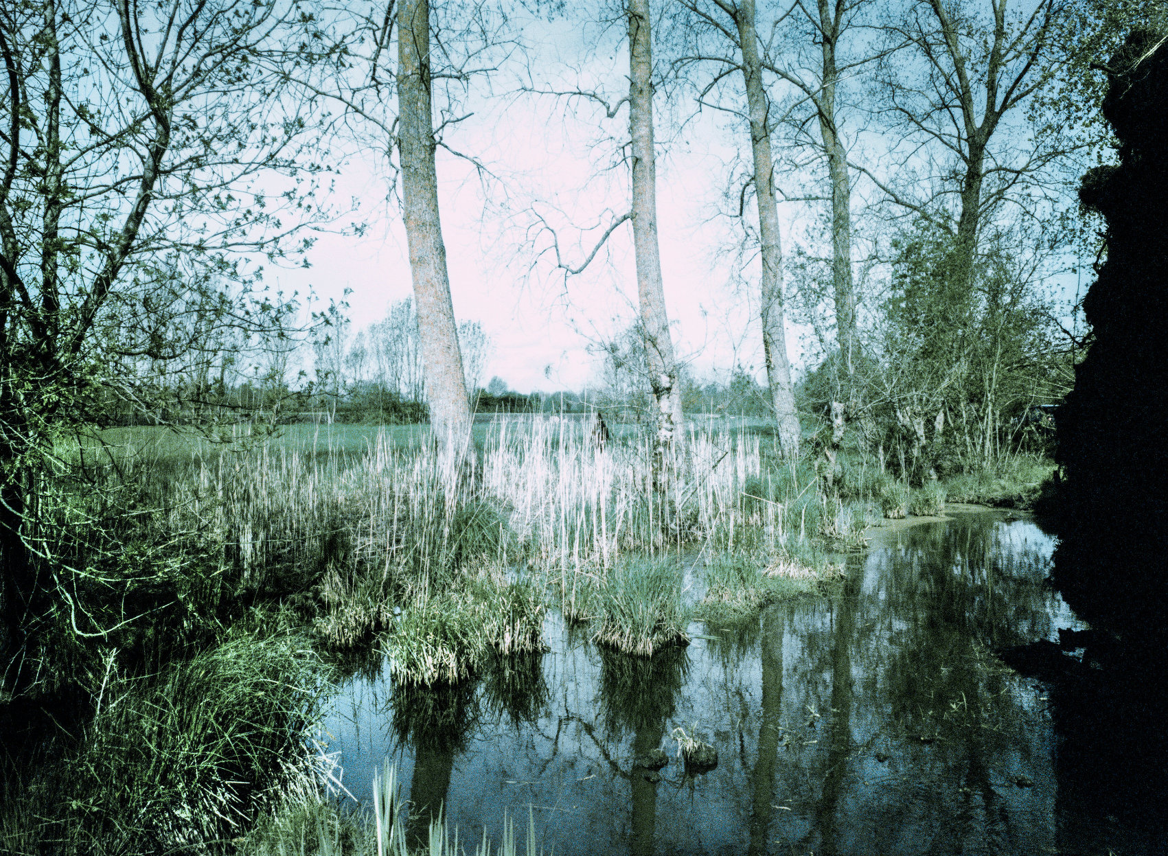Parfois des silhouettes viennent s’inscrire dans le paysage. Elles sont à peine présentes. Singulièrement, la chromatique les incorporent au paysage plutôt qu’elle ne les souligne. Légères et suggestives, souvent de dos ou en déséquilibre, elles passent dans la scène plutôt qu’elles ne l’accaparent. Le cliché définit un état d’être plus qu’il ne livre un portrait. Les corps sont enveloppés par la nature, ils s’y fondent. Les figures fonctionnent comme une métamorphose d’un état du paysage. Elles interagissent silencieusement avec lui, telles celles qui affleurent dans certaines photographies de Tacita Dean. Pour résumer : ce que l’on perçoit dans les photographies Clara Chichin est tout ce qui est en deçà du réel.
