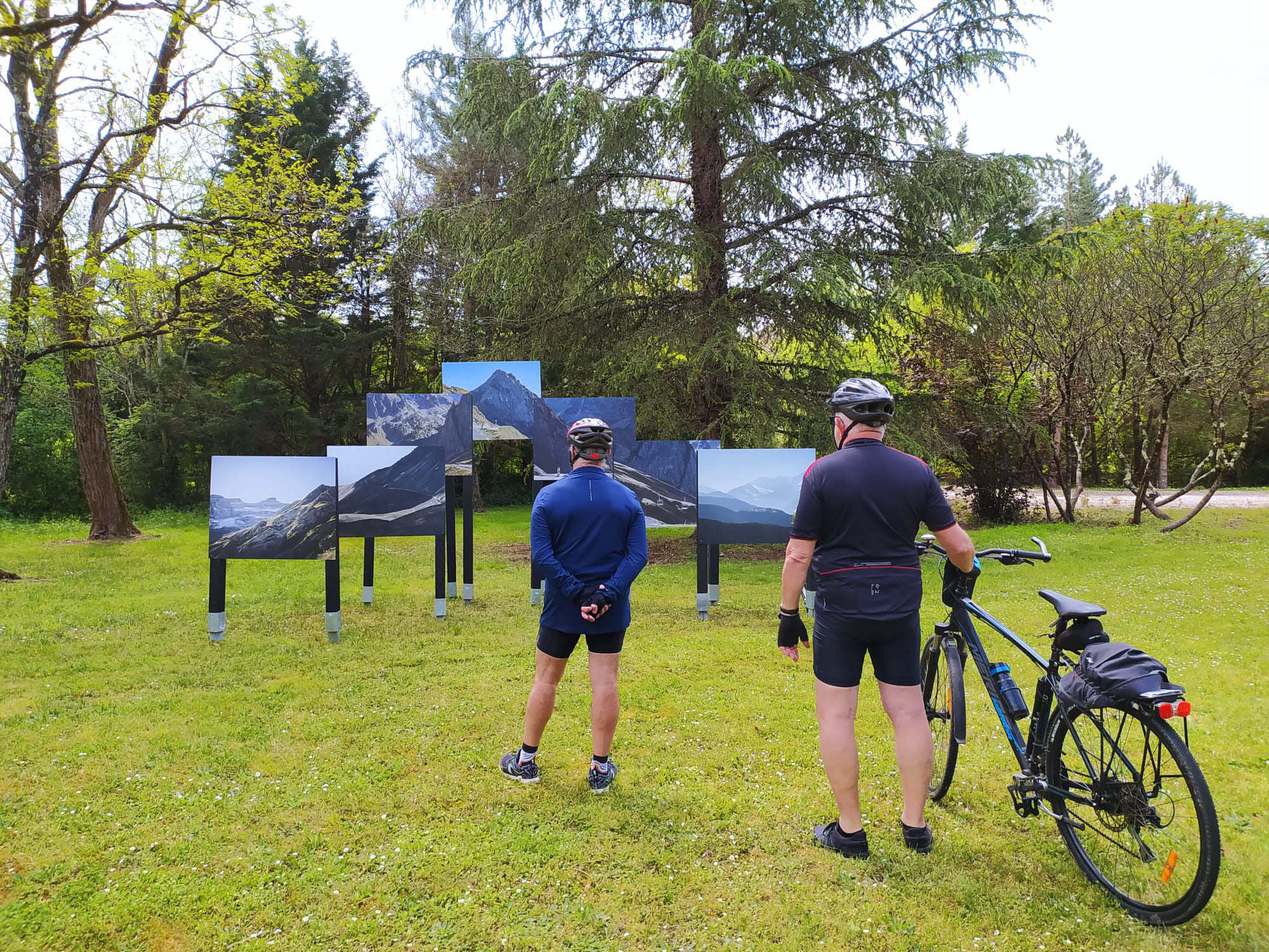 Il faudrait s’arrêter, descendre de son vélo ou cesser de courir pour percevoir les détails de la mise en place du jeu visuel. Il n’y a pas de trucage, seulement une rencontre, entre deux mondes, deux continents, deux visions de paysages. Lela spectateurrice est invitée, en faisant des allers/retours entre les photos, à découvrir la beauté de chaque image. La balade par excellence d’une excursion en « slow motion » invitera à aller plus loin dans la découverte des trois autres sites des Chemins d’Art.
