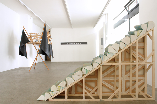 Bois, résine, acrylique sur toile, lingot d’étain, 206 x 28 x 136 cm