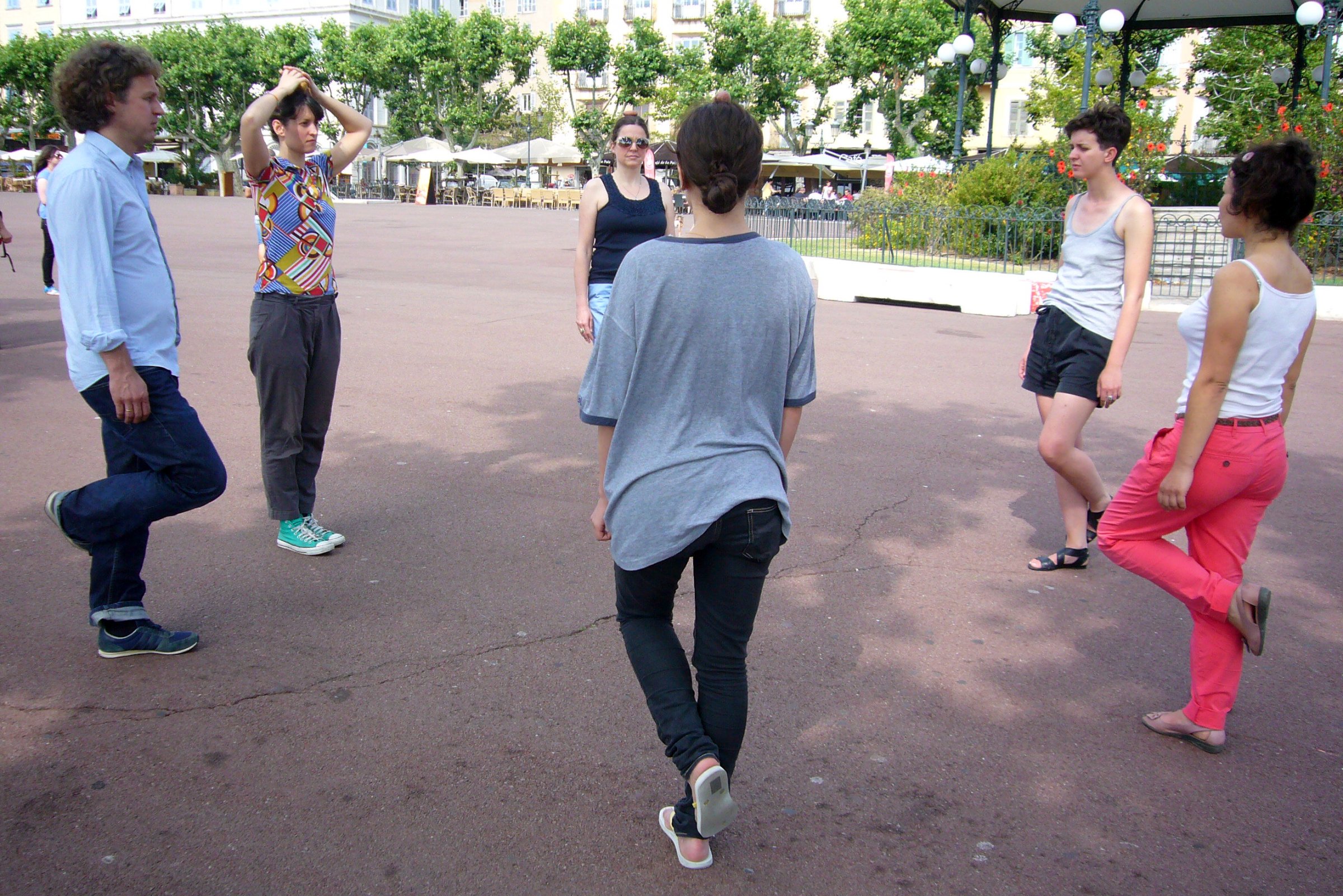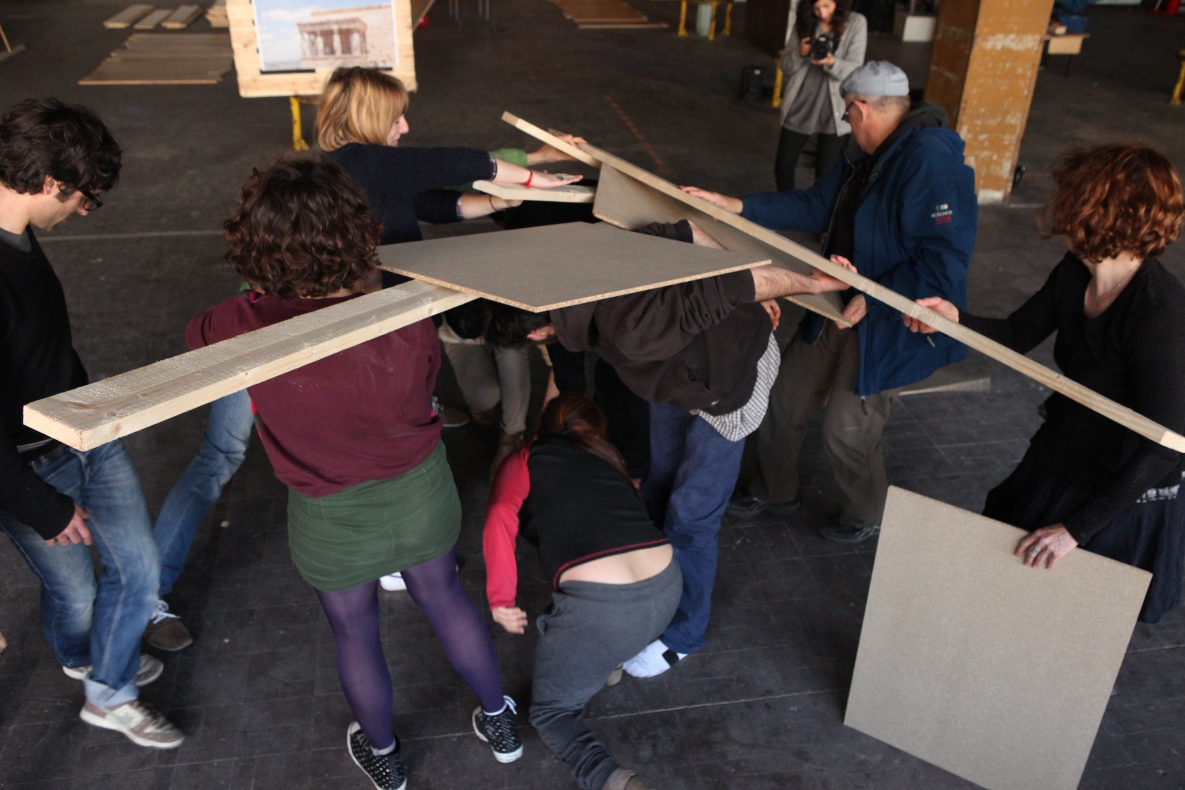 Nous proposons d’utiliser l’image des six caryatides se retournant et faisant agora, pour constituer des groupes de six personnes qui créeraient des cercles de micro-agoras. Nous développerons un travail de perception mobilisant les techniques de méditation ou de yoga traditionnel auquel s’articulera des exercices de retour sur expérience.