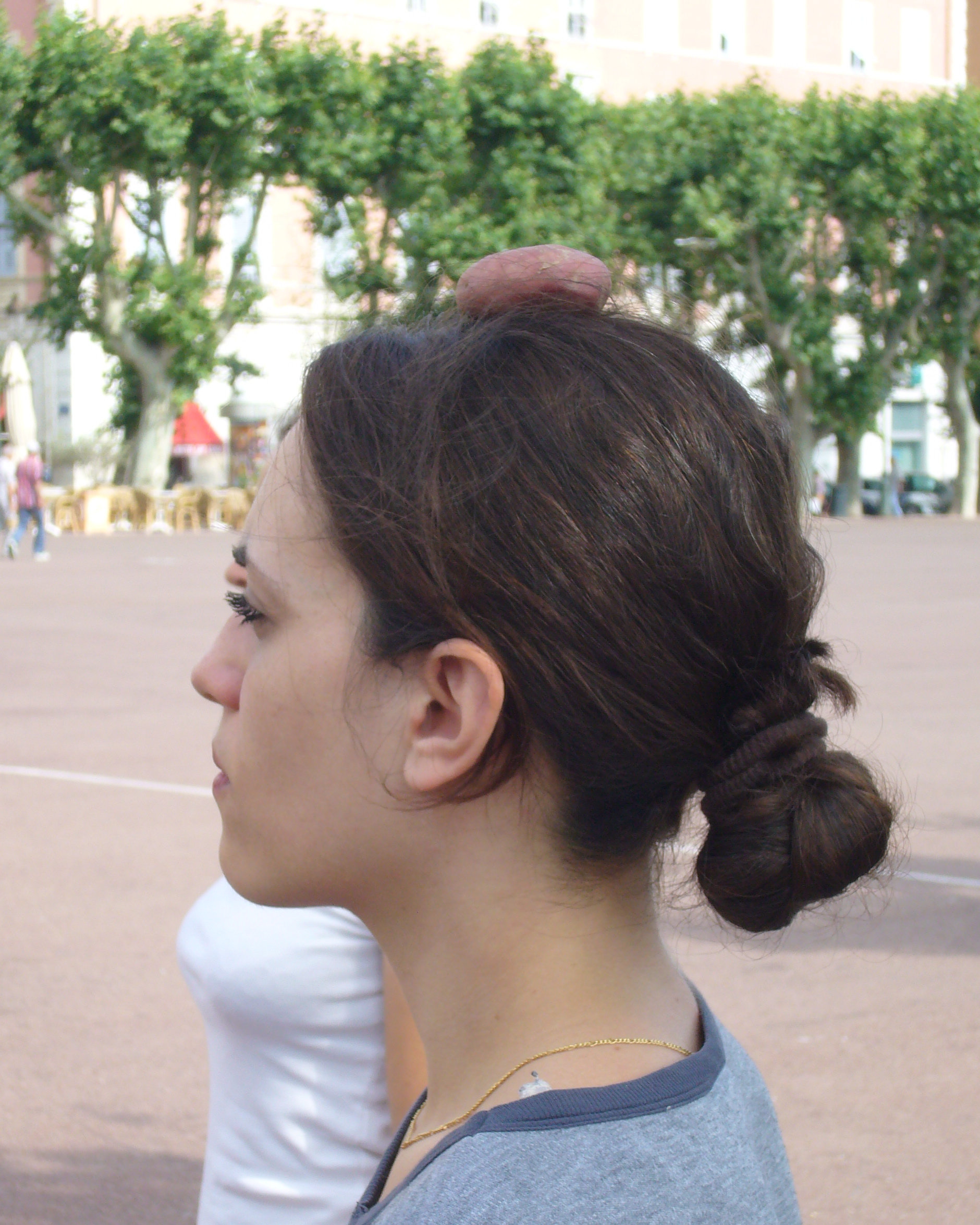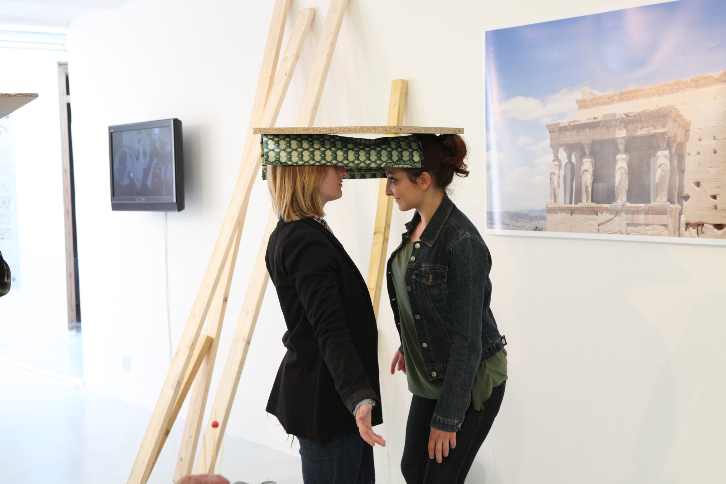 Les caryatides : un stéréotype sur lequel on pourrait s’appuyer pour faire un enjeu de micro-politique, et approcher le thème de l’agora. Nous imaginons que nous pourrions détourner ces caryatides de leur servitude et les transformer en citoyennes : si les caryatides se retournaient les unes vers les autres, elles se regarderaient et feraient agora. Elles pourraient réfléchir politiquement à leur situation. [...]