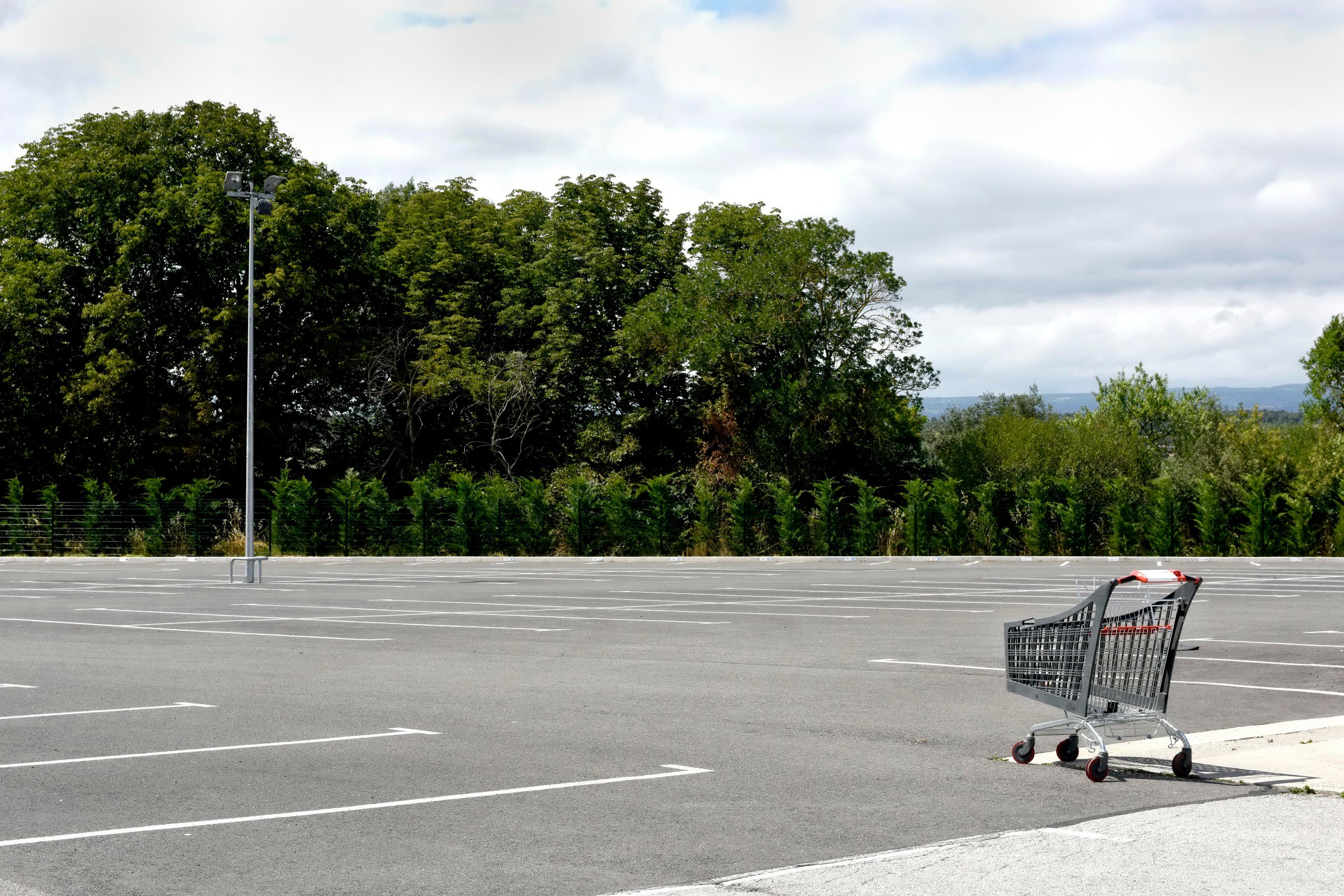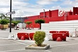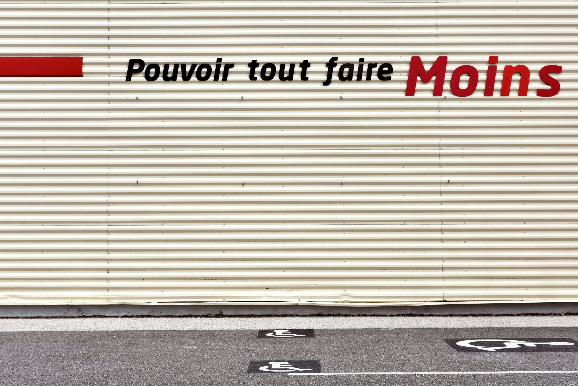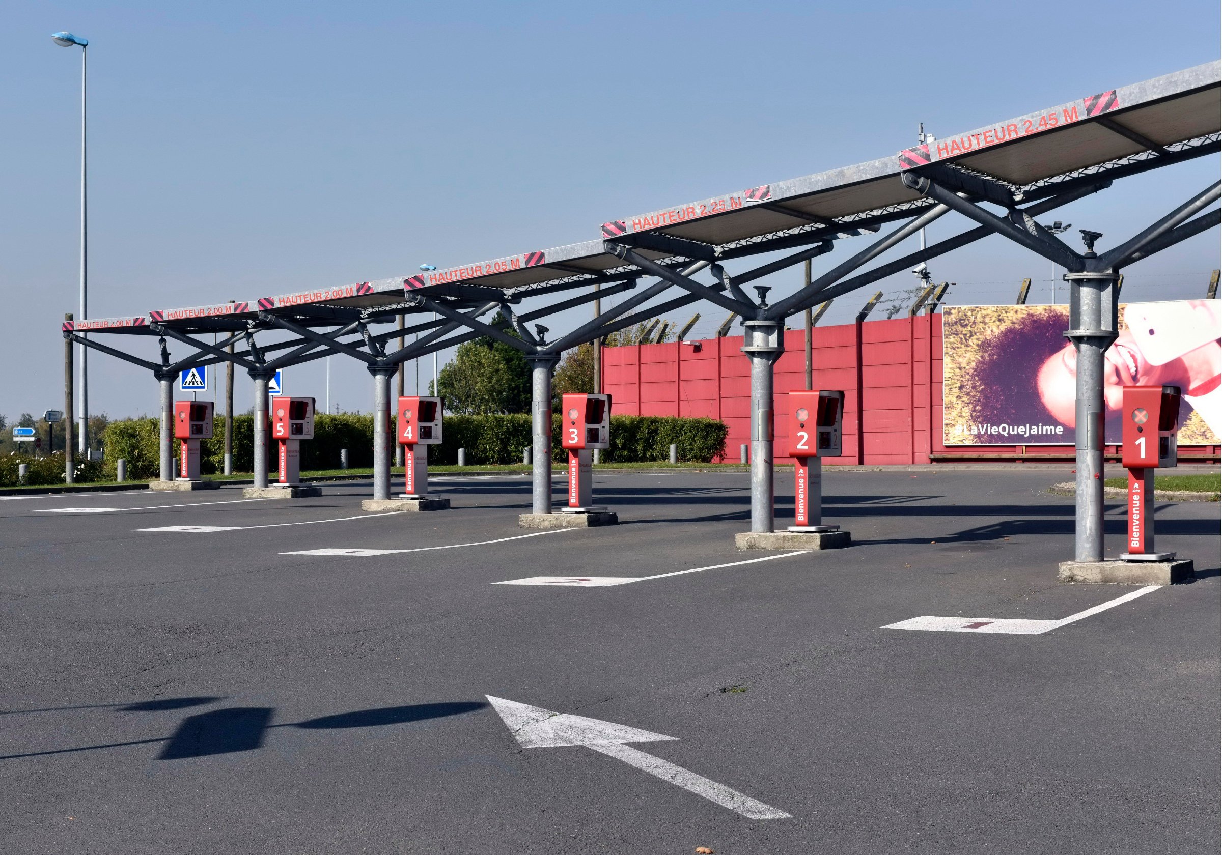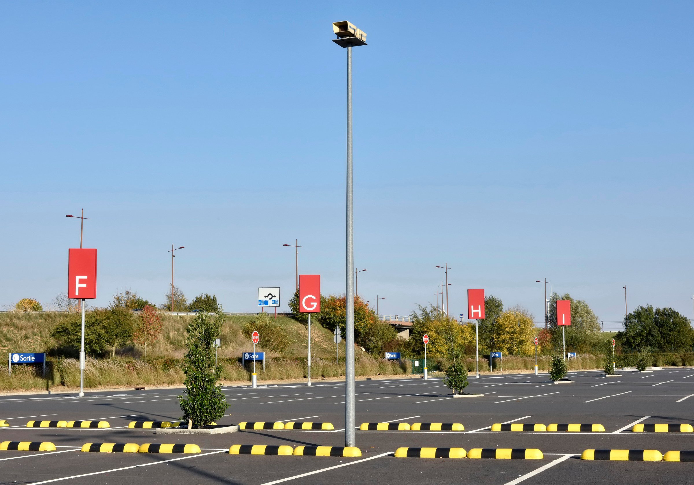 La grande distribution représente en surface plus de 40 millions de mètres carrés en France. Architecture et décors artificiels de la grande distribution offrent aux entrées et sortie des villes des visions parfois surréalistes une fois débarrassées des humains et de leurs voitures.