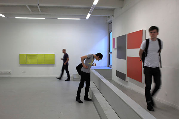 bardage métallique, peinture murale, tube phosphorescent, dimensions variables