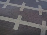 L’installation représente une forêt artificielle. Telle une image de 2D augmentée, les arbres, matérialisés par des planches au motif de camouflage, y sont disposés sur différents plans ce qui donne un effet de profondeur.