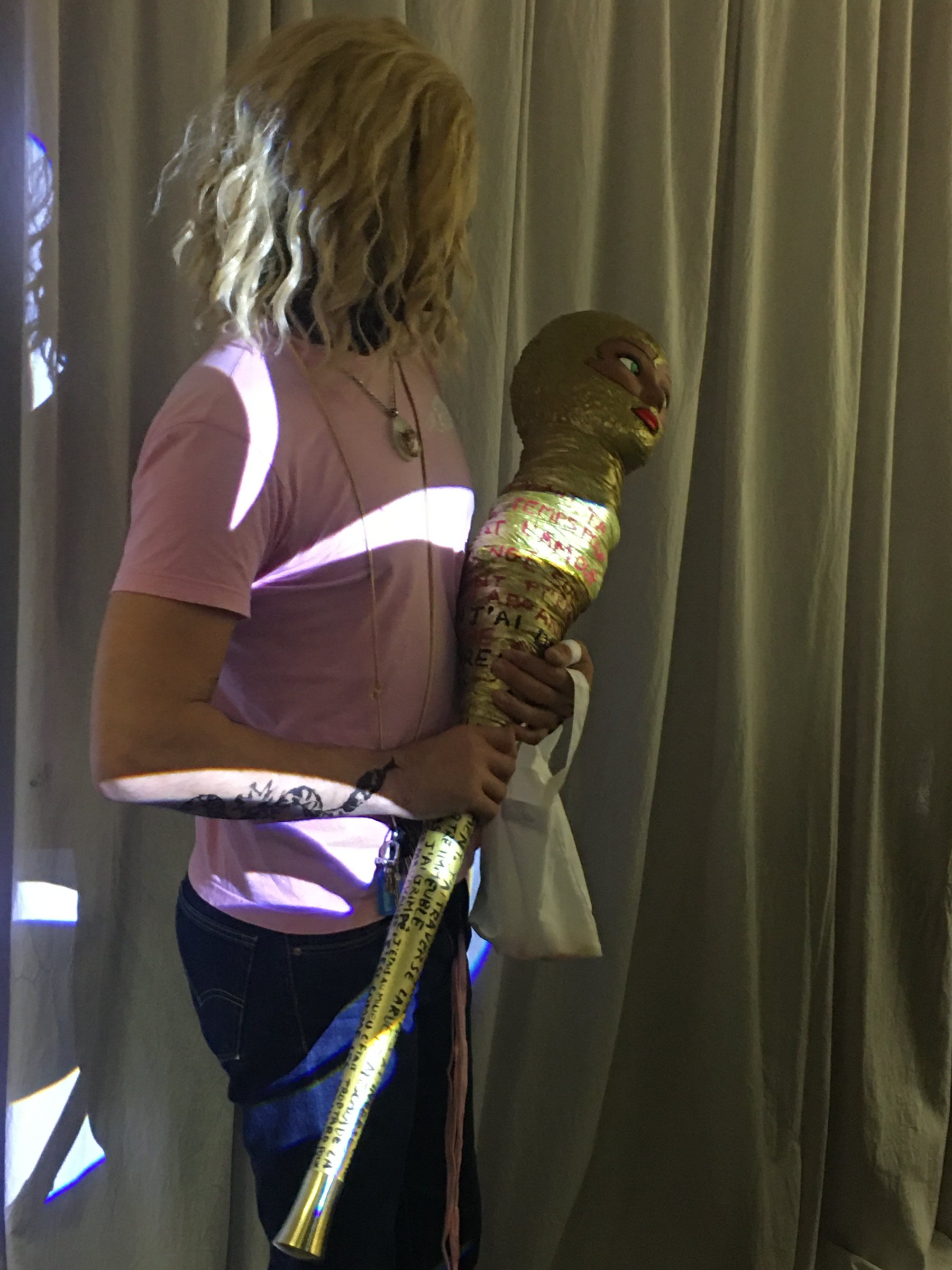Après quelques gestes incantatoires visant entre autres à focaliser l’attention du public, je sélectionne une volontaire pour un câlin avec la technique du « chou-fleur » empruntée à la cour de récréation.