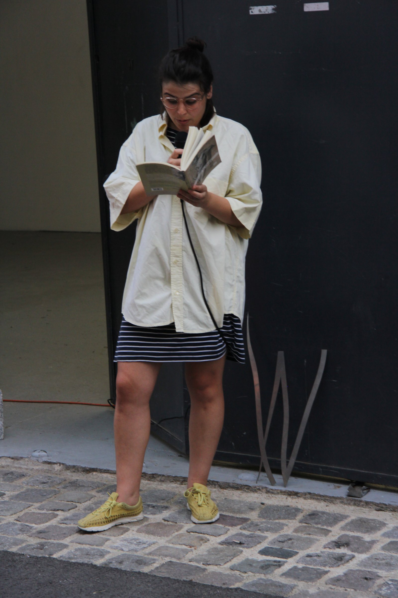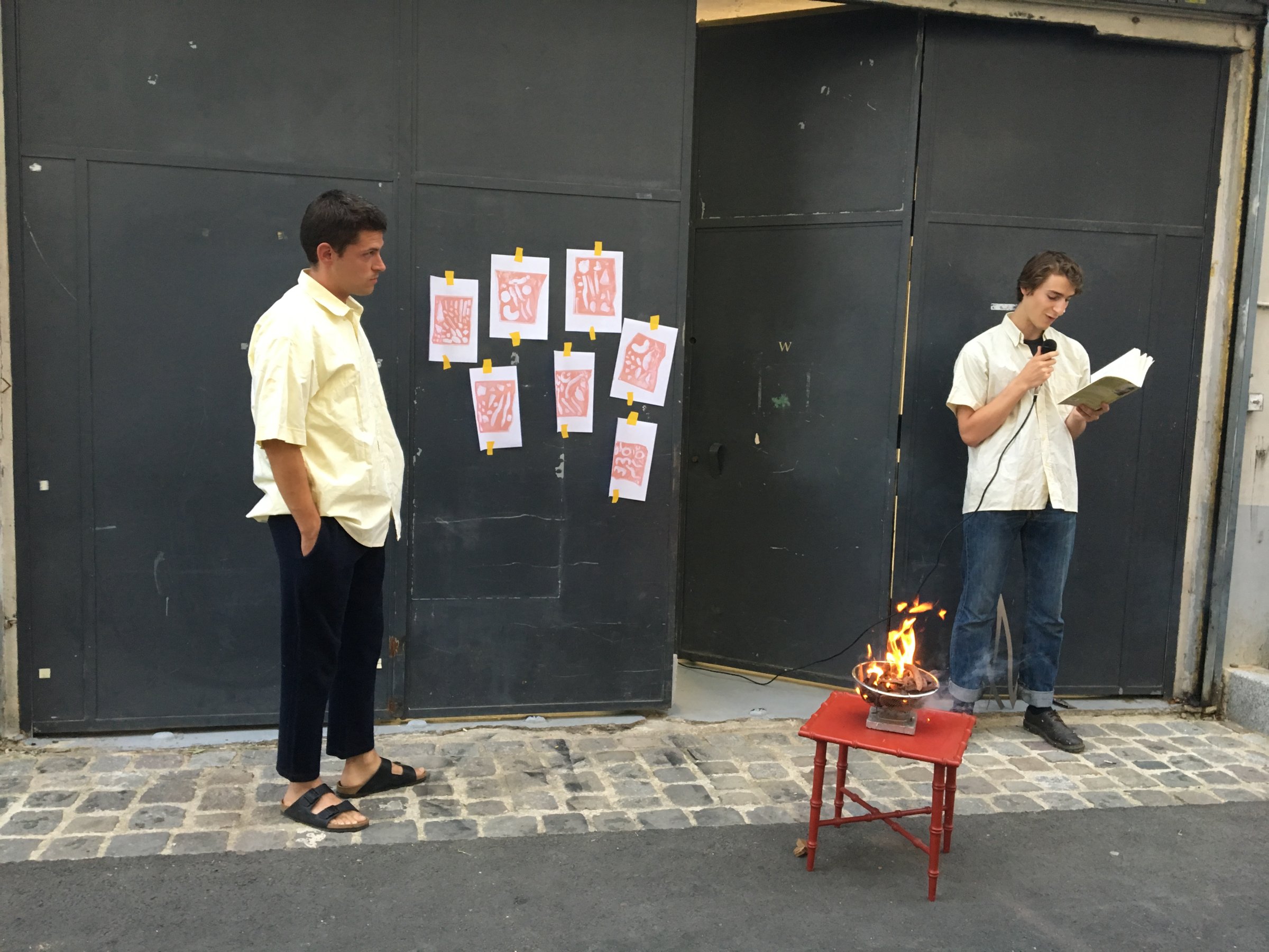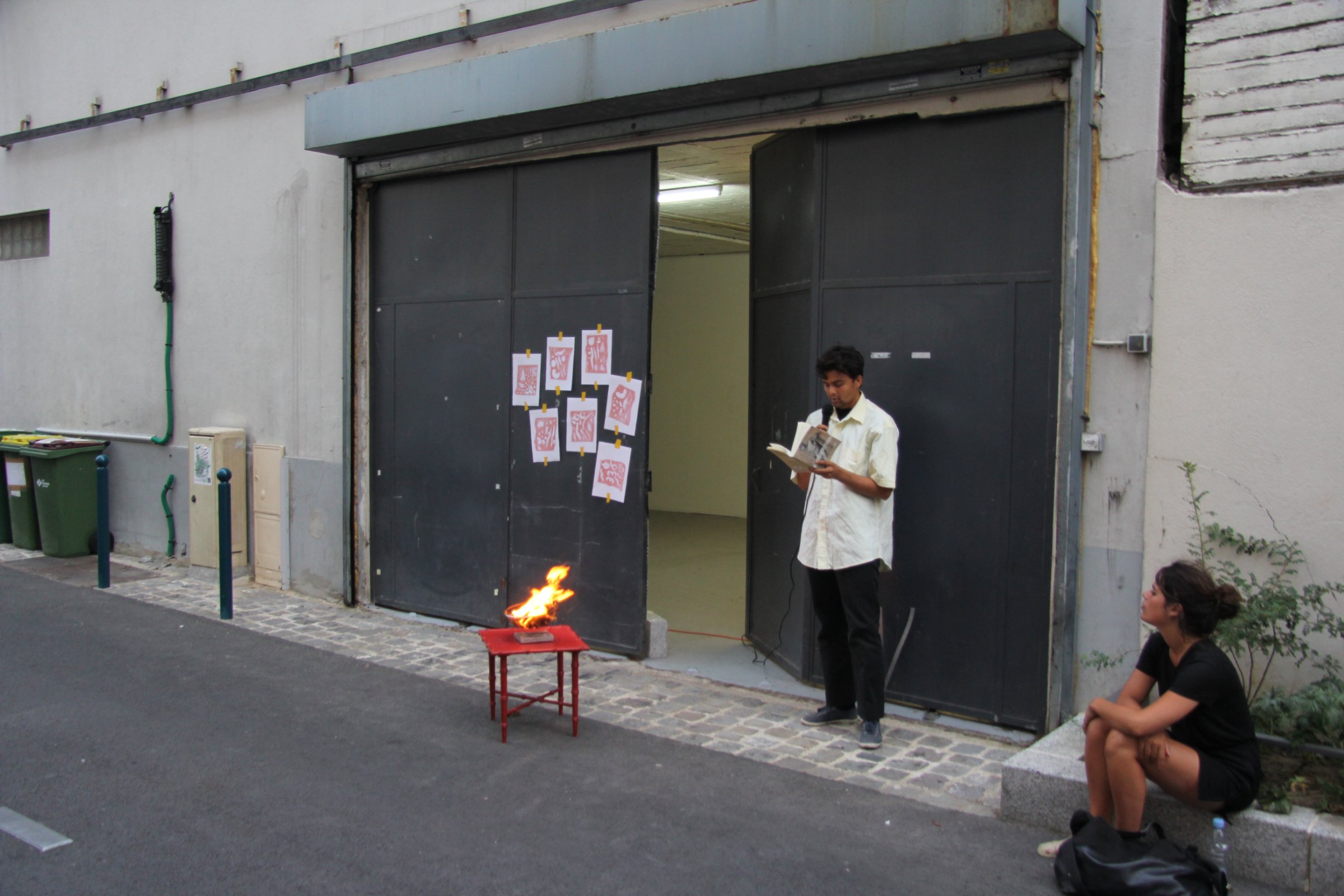 Devant l’entrée de la galerie, six volontaires se relaient devant un brûle-encens pour lire le même texte. Un arrêt du tribunal de Bordeaux de 1995 stipule qu’un individu n’a pas le droit « de naître ou de ne pas naître, de vivre ou de ne pas vivre » et que « la naissance ou la suppression de sa vie ne peut être considérée comme un hasard ou une malchance » dont il peut « tirer des conséquences juridiques » {note}1.