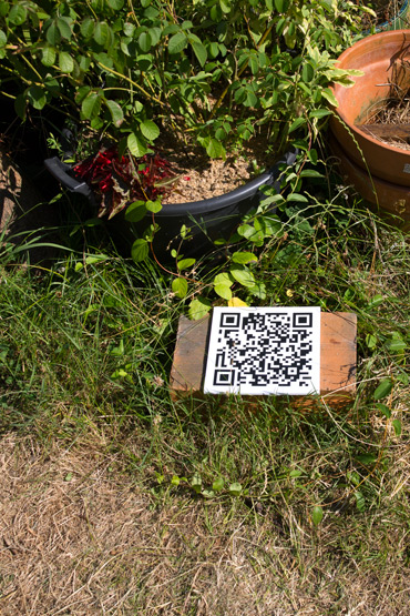 par delà est une installation de QRcodes répartis dans les 8 jardins du parcours Diffractis au jardin #4. Chaque QRcode est disposé dans le jardin qui l’accueille de manière à orienter le point de vue du lecteur ou de la lectrice. Imprimés sur un carré en pvc de 20 x 20 cm, ils étaient posés au sol. Courts textes invitant à élargir le regard au-delà des limites des jardins. Ils sont autant d’invitations poétiques à laisser vagabonder nos esprits sur les choses communes qui s’assemblent autour de nous.